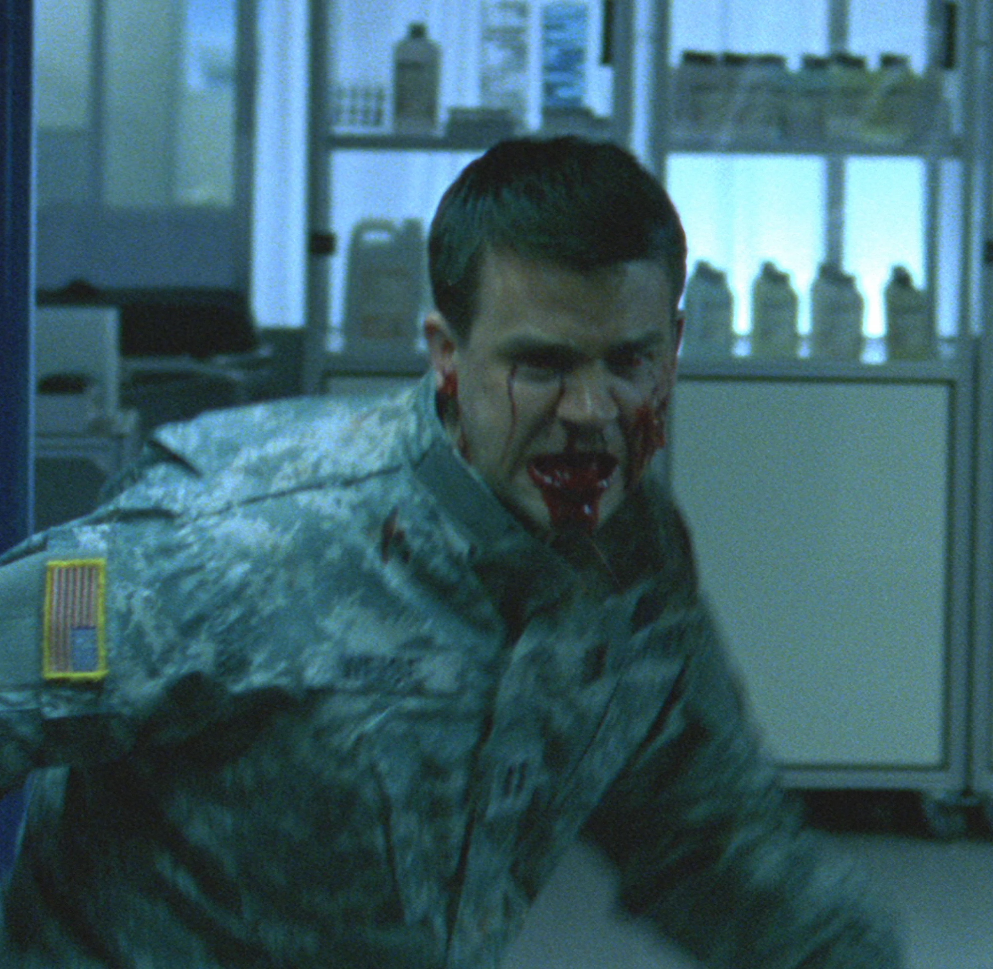 The infected Weise, appearing to remember the two uninfected children's location from just before his infection, promptly rampaged back into the detainment area by himself and tried to break through the screen observing Tammy and Andy's detainment room, until Scarlet Levy entered behind Weise and shot him through the back of his head, killing him instantly.